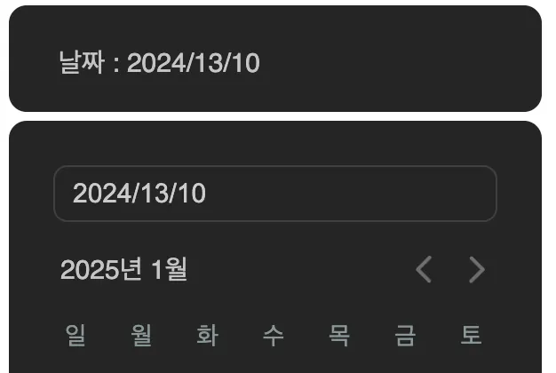 12월 달력에서 1월 날짜를 클릭하면 1월이 13월로 표시되는 버그