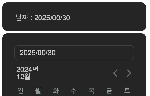 1월 달력에서 12월 날짜를 클릭하면 12월이 00월로 표시되는 버그