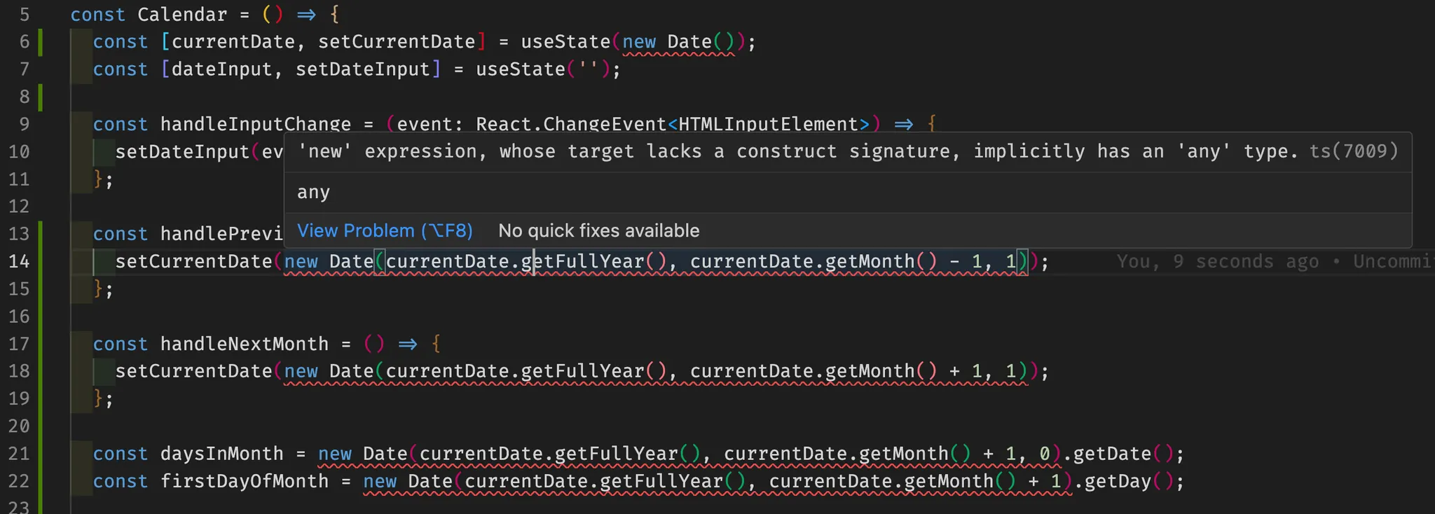 흠 어쩐지 이상했다. new Date()가 JavaScript든 TypeScript든 쓰일 수 없을리가 없는 내장함수인데.. 갑자기 new Date메서드드를 사용할 수 없다고 해서 에러를 수정하면서도 의문이었다.