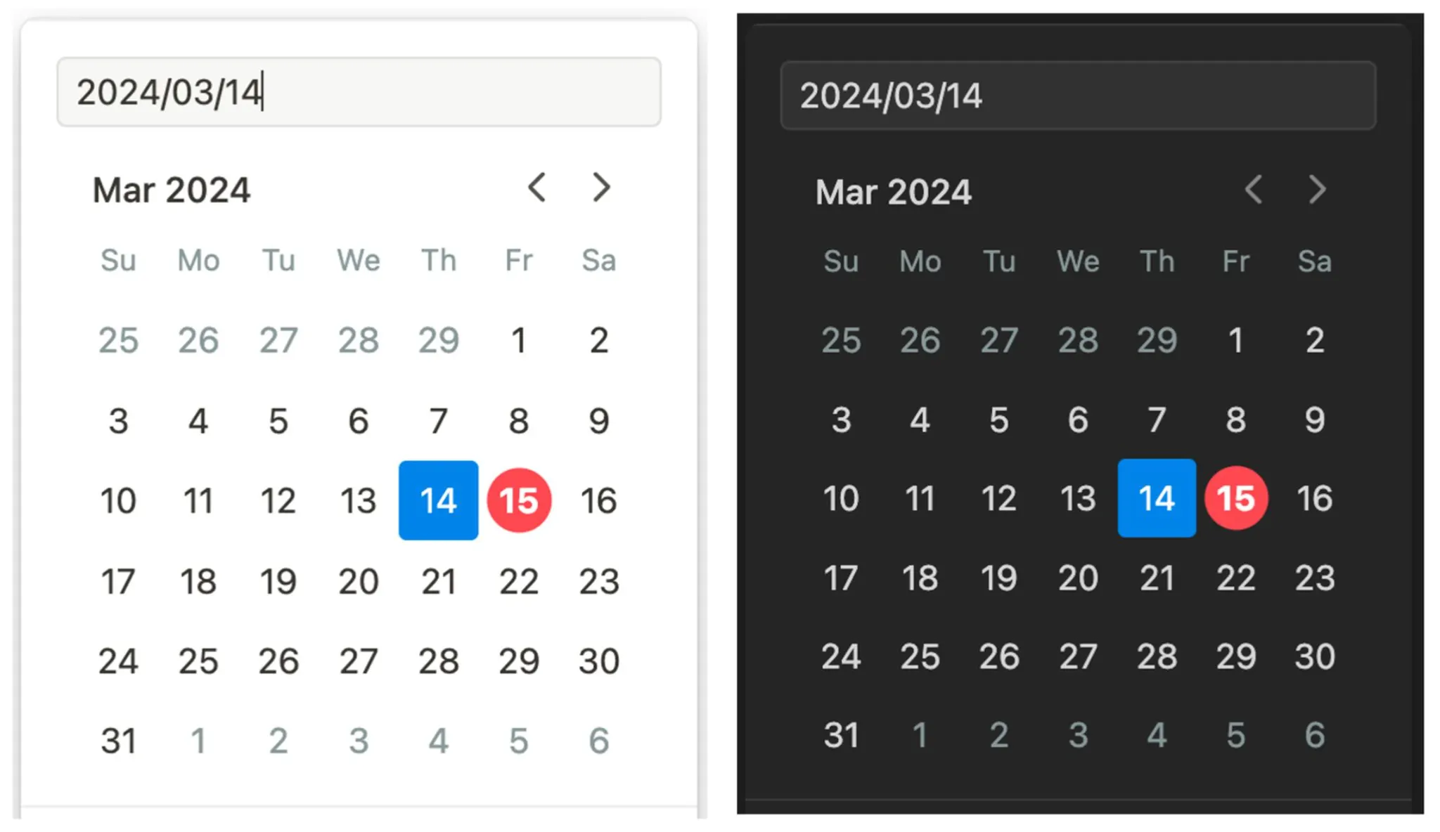 노션의 캘린더 (라이트 모드 / 다크 모드)